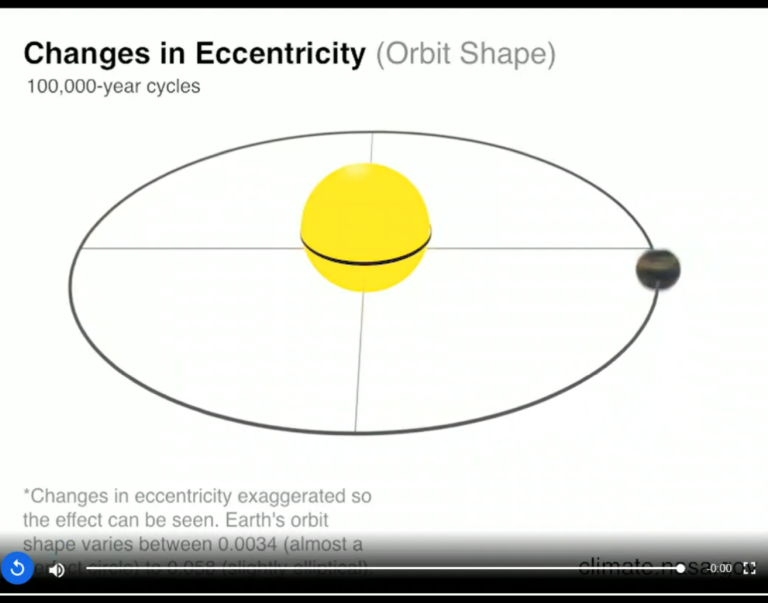 - Eccentricity – the shape of Earth’s orbit (more circular or more elongated)